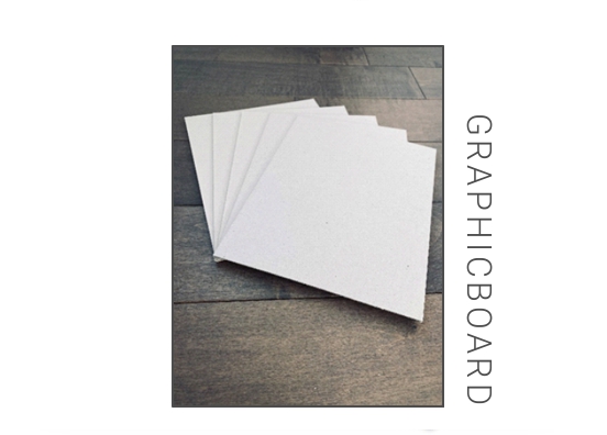 Graphic board is a solid grey paperboard comprised of 100% recycled paper. It tends to be very smooth; it lays flat and stays flat.